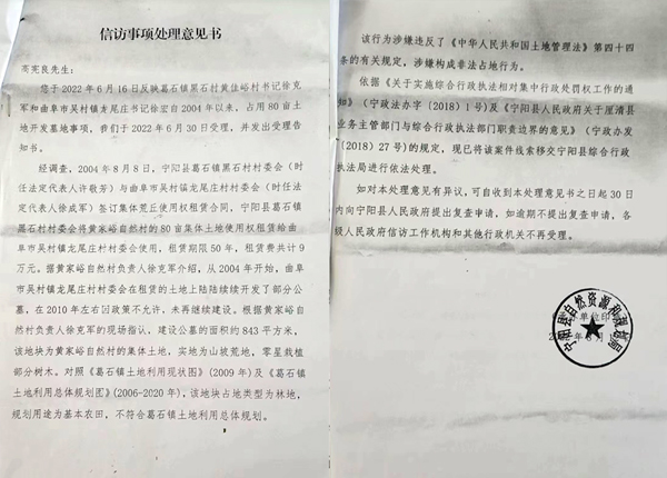 周福俊说,宁阳县自然资源局查处了2004年黑石村租赁给曲阜市吴村镇龙尾庄村委会开发公墓的行为,认为涉嫌违法,构成非法占地行为,将案件线索移交宁阳县综合行政执法局依法处理,但是至今没有处理结论。