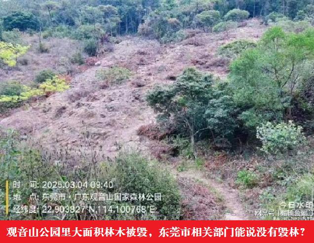 对此,有读者说:典型的走秀!观音山2000亩的树木被毁坏没人管,其余早已涉及刑事犯罪,却来搞些植树噱头来宣扬为东莞高质量发展筑牢绿色屏障!观音山2000多亩林地被毁坏,这是国家宝贵的森林资源,那是有多么好的森林绿色屏障啊!