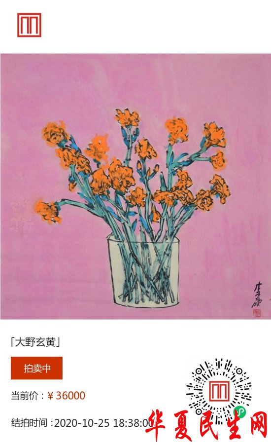 10月22日下午,李可染画院院长李庚新作静物花卉拍卖在融艺之堂艺术家平台正式开拍,以限时直播方式进行拍卖,至10月25日结拍。一朵朵色彩浪漫、激情烈烈的芳华绽放,一片片嫣红姹紫、明黄幽蓝的彩卉流奔,大块颜色,花事幽微,每一幅都似在触碰出一花世界的芥子须弥之相。李庚先生明艳深厚的创作甫一面世,讯速引起美术界业内人士关注。